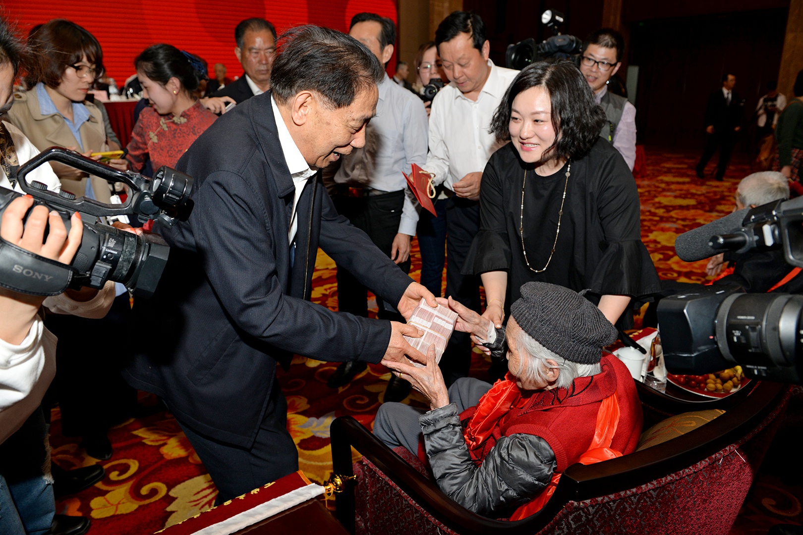 4月26日,耀庭慈善基金會(huì)“春天行動(dòng)”發(fā)布會(huì)在紅豆集團(tuán)召開,7名來自東港鎮(zhèn)的百歲壽星收到了基金會(huì)的“愛心大禮包”:一次性發(fā)放5萬元關(guān)愛補(bǔ)貼金,以后每年再