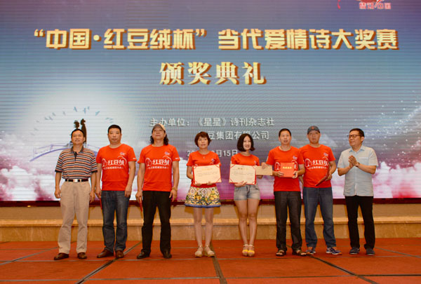 8月15日,備受關(guān)注的“中國(guó)?紅豆絨杯”當(dāng)代愛情詩(shī)大獎(jiǎng)賽各項(xiàng)獎(jiǎng)在無(wú)錫紅豆杉莊正式揭曉,來(lái)自湖南長(zhǎng)沙的宋志剛以組詩(shī)《紅豆,那顆磅礴的心跳》在4.62萬(wàn)首投稿詩(shī)作中脫穎而出,獲得特等獎(jiǎng)。