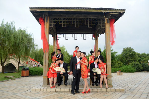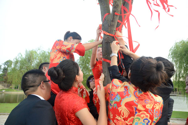 在紅豆,有著無數個這樣的故事等待我們挖掘。這些紅豆人因為紅豆情文化而扎根企業,從而也吸引更多的人選擇在紅豆扎根。紅豆是有形的情,在紅豆,每個員工都會感受到家庭溫暖。此次紅豆樹下的婚禮,紅豆為紅豆員工打造美輪美奐的婚禮,精心安排各種獨具紅豆特色的環節。鵲橋相會、恩愛宣誓、紅豆樹下鎖同心、新人共放荷花燈,紅豆情緣等等系列戶外儀式,演繹著新人相識相戀相愛的浪漫故事。紅豆集團還為新人們送上紅豆緣定制首飾、定制旗袍、紅豆形象男裝等具有濃厚中國風的新婚賀禮,共邀新人的親朋好友參加這場最浪漫的新中式集體婚禮,以紅豆之名見證最美的愛情。
