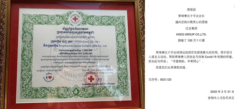 Cao Jianjiang said that the donation of masks to Cambodia is the concrete manifestation of "Win-Win" concept. Hodo Group will continue to operate the Sihanoukville Special Economic Zone in the future, make greater contributions to the employment and economic and social development of the local people, and write a new chapter for the everlasting friendship between China and Cambodia.