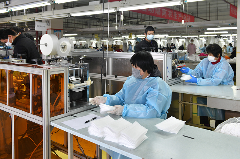 (2月9日紅豆集團達到日產(chǎn)一般防護服3萬件)
