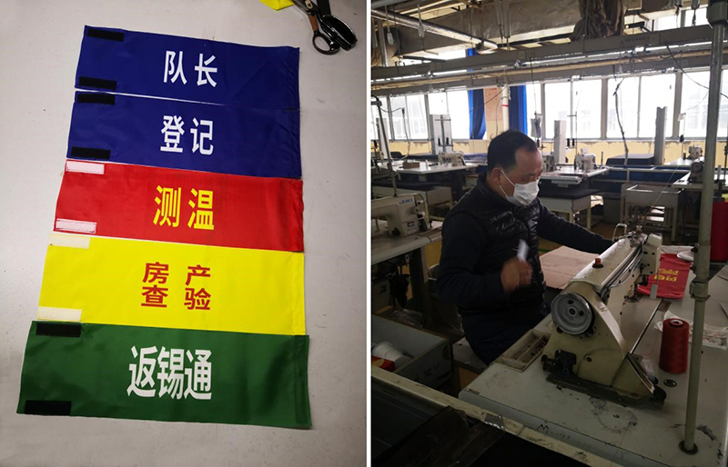 “嚴峻的形勢,給當時的工廠資源調(diào)度造成了一定困難,為了找到合適的供應商,大家打了數(shù)十通電話,終于,找到一家可以印刷袖標的廠家。”顧彩紅回憶說,“但一個袖標完成,必須要經(jīng)過打印、裁剪、貼膜三項工序,最后還要運輸回工廠完成人工粘貼工作,這意味著里面的每一個環(huán)節(jié)都要和時間賽跑。”