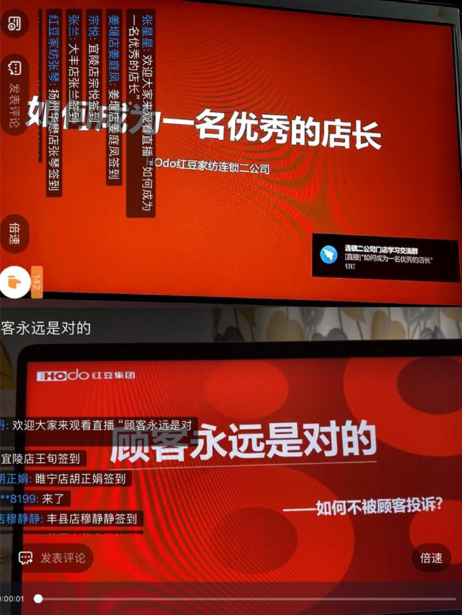 據(jù)悉,除“紅豆大學(xué)”APP外,紅豆集團(tuán)旗下各公司還在利用微信、釘釘、云端等各個(gè)平臺開展線上培訓(xùn),確保培訓(xùn)的多樣化和有效性。例如紅豆居家公司開展《這一秒不放棄,下一秒就會有希望!》線上培訓(xùn),對特殊時(shí)期門店客流進(jìn)行了分析,并以優(yōu)秀案例分析來告訴大家如何增量用戶,該場培訓(xùn)參與總計(jì)超2300人次。還有,紅豆家紡連鎖二公司的《如何成為一名優(yōu)秀的店長》培訓(xùn)、紅豆國際的《市場多元化拓展培訓(xùn)》等都取得了良好的反響。據(jù)統(tǒng)計(jì),從1月31日至3月9日,整個(gè)紅豆集團(tuán)累計(jì)開展培訓(xùn)超700場次,參與培訓(xùn)28萬人次。