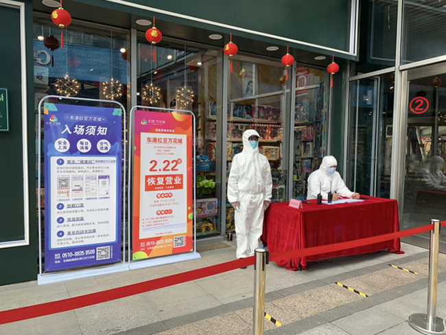 閉店期間,各項目積極做好防疫保障,儲備防疫物資,在得知可申請回復營業(yè)后第一時間提交申請,經政府驗收批準,2月22日東港紅豆萬花城成為錫山區(qū)首家恢復營業(yè)的購物中心,全力保障百姓的生產生活需求,與此同時,中山路紅豆萬花城、人民路紅豆萬花城、鎮(zhèn)江紅豆萬花城等項目也逐步通過驗收,恢復營業(yè)。