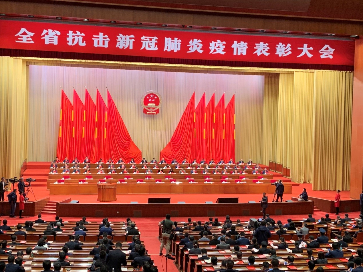 弘揚偉大抗疫精神,走好新時代的長征路!11月26日上午10時,全省抗擊新冠肺炎疫情表彰大會在江蘇大劇院隆重舉行。會議表彰了我省在抗擊新冠肺炎疫情斗爭中作出突出貢獻的先進個人和先進集體。江蘇省委書記婁勤儉出席表彰大會并講話,省長吳政隆主持大會。全國抗擊新冠肺炎疫情先進個人、全國優(yōu)秀共產(chǎn)黨員,紅豆集團黨委書記、董事局主席周海江與省內(nèi)其他國家級榮譽代表一起出席大會,并在主席臺就座,見證了這一意義非凡的榮譽時刻。