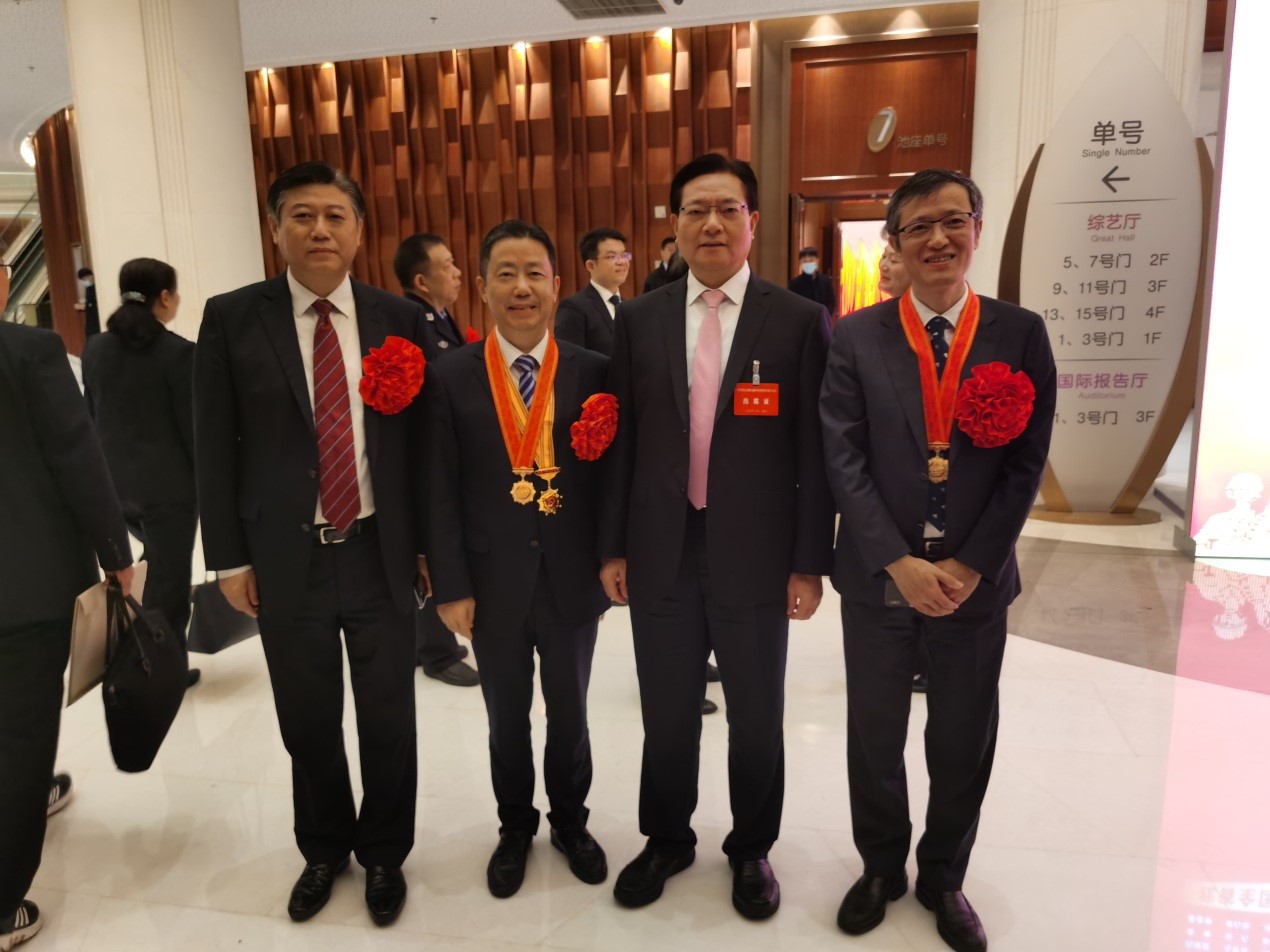 無錫市委書記黃欽(左三)帶領(lǐng)無錫市3名國家級榮譽代表,參加江蘇省新冠肺炎疫情表彰大會,從左至右分別為:“全國抗擊新冠肺炎疫情先進集體”獲得者,無錫市第五人民醫(yī)院黨委書記、院長魯曉杰(左一);“全國抗擊新冠肺炎疫情先進個人”“全國優(yōu)秀共產(chǎn)黨員”兩項榮譽獲得者,紅豆集團黨委書記周海江(左二);“全國抗擊新冠肺炎疫情先進個人”獲得者,無錫市人民醫(yī)院副院長、胸外科主任、主任醫(yī)師陳靜瑜(右一)。