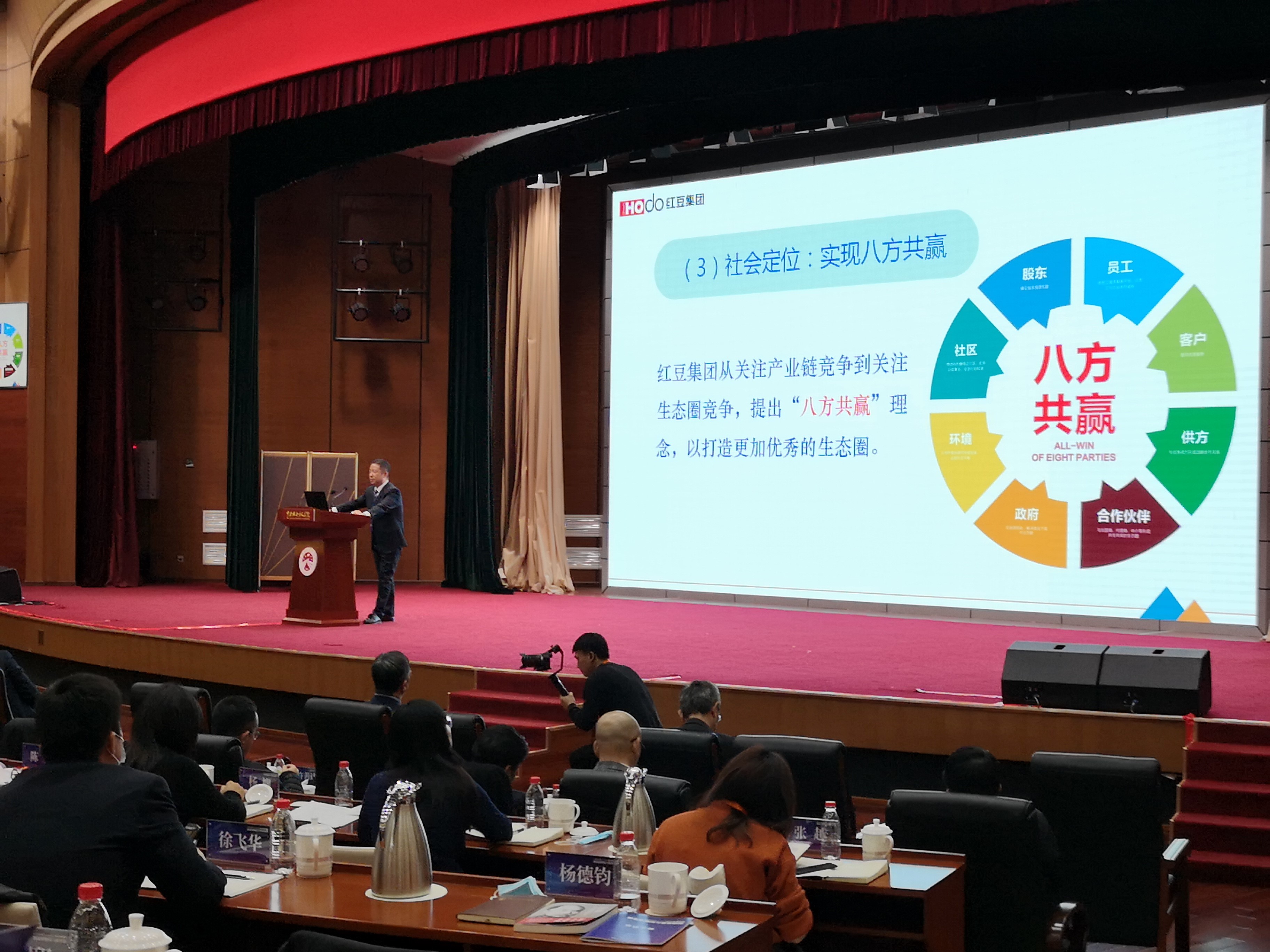 12月12日,張謇精神的時代意義2020年度論壇在中央社會主義學院開幕,兩百多專家、學者和企業家參加了論壇。全國人大常委會副委員長、民建中央主席、中央社會主義學院院長、中華職業教育社理事長郝明金,中央統戰部副部長、國務院僑務辦公室主任、中央社會主義學院第一副院長潘岳,中華全國工商業聯合會黨組成員、副主席李兆前,江蘇省委常委、統戰部部長楊岳等領導出席論壇,論壇以“新發展格局與張謇精神”為主題,大家將圍繞“雙循環”新發展格局下的民營經濟發展、實體經濟的高質量發展與職業教育、愛國企業家典范的內涵闡釋三個議題板塊作主旨演講和探討。紅豆集團董事局主席周海江應邀參加論壇,并作了“新發展格局下 發揚張謇精神打造三自企業”主題演講。