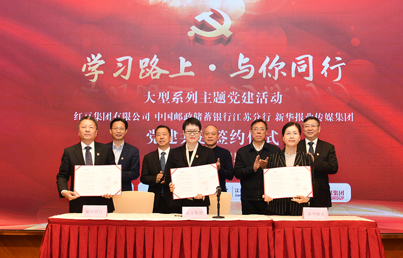活動(dòng)上,紅豆集團(tuán)有限公司、中國郵政儲(chǔ)蓄銀行江蘇分行、新華報(bào)業(yè)傳媒集團(tuán)三方舉行了黨建共建簽約儀式,來自三方的一線黨支部也進(jìn)行了結(jié)對(duì)共建。這也是繼去年12月在徐工集團(tuán)成功開啟首場“學(xué)習(xí)路上?與你同行”暨“一路‘郵’你”主題黨建活動(dòng)之后舉辦的第二場大型活動(dòng)。