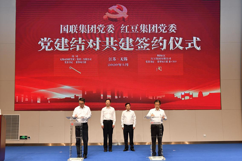 5月29日,紅豆集團有限公司與無錫市國聯發展(集團)有限公司在紅豆錫東財富廣場舉行了黨建結對共建暨戰略合作簽約儀式,共同探索新時期黨建工作新思路、新路徑、新方法,攜手為無錫爭當全省高質量發展領跑者注入更多活力。中共無錫市委常委、組織部部長馮軍,中共無錫市錫山區委書記顧中明,國聯集團黨委書記、董事局主席許可,國聯集團黨委副書記、總裁華偉榮,紅豆集團黨委書記、董事局主席兼CEO周海江,中共無錫市錫山區委常委、組織部部長竇虹等出席活動。